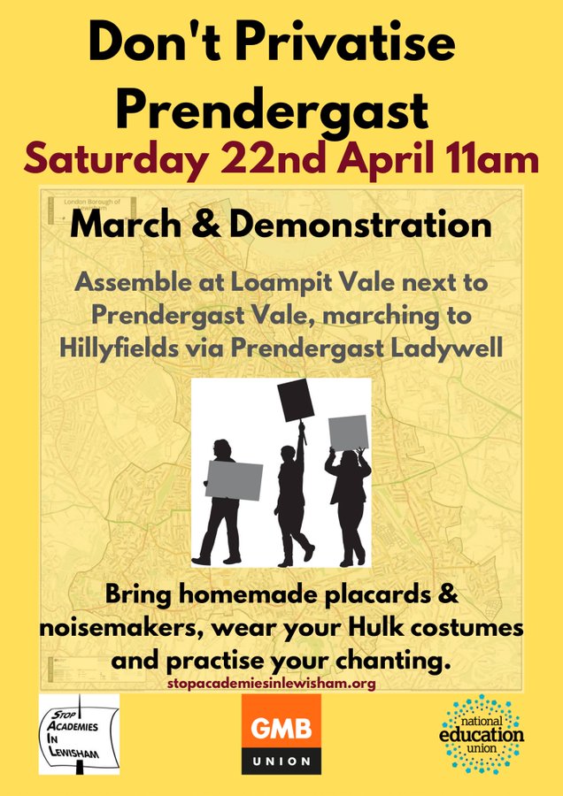 The Governing Board has not valued their opinions and implied in numerous ParentMail messages to you that they are naive, gullible and easily manipulated by sinister external forces who don’t have children’s interests at heart, namely Lewisham NEU officers Eleanor Davies (primary school teacher and Prendergast parent!) and me (secondary school English teacher who started working in Lewisham schools in 2008).