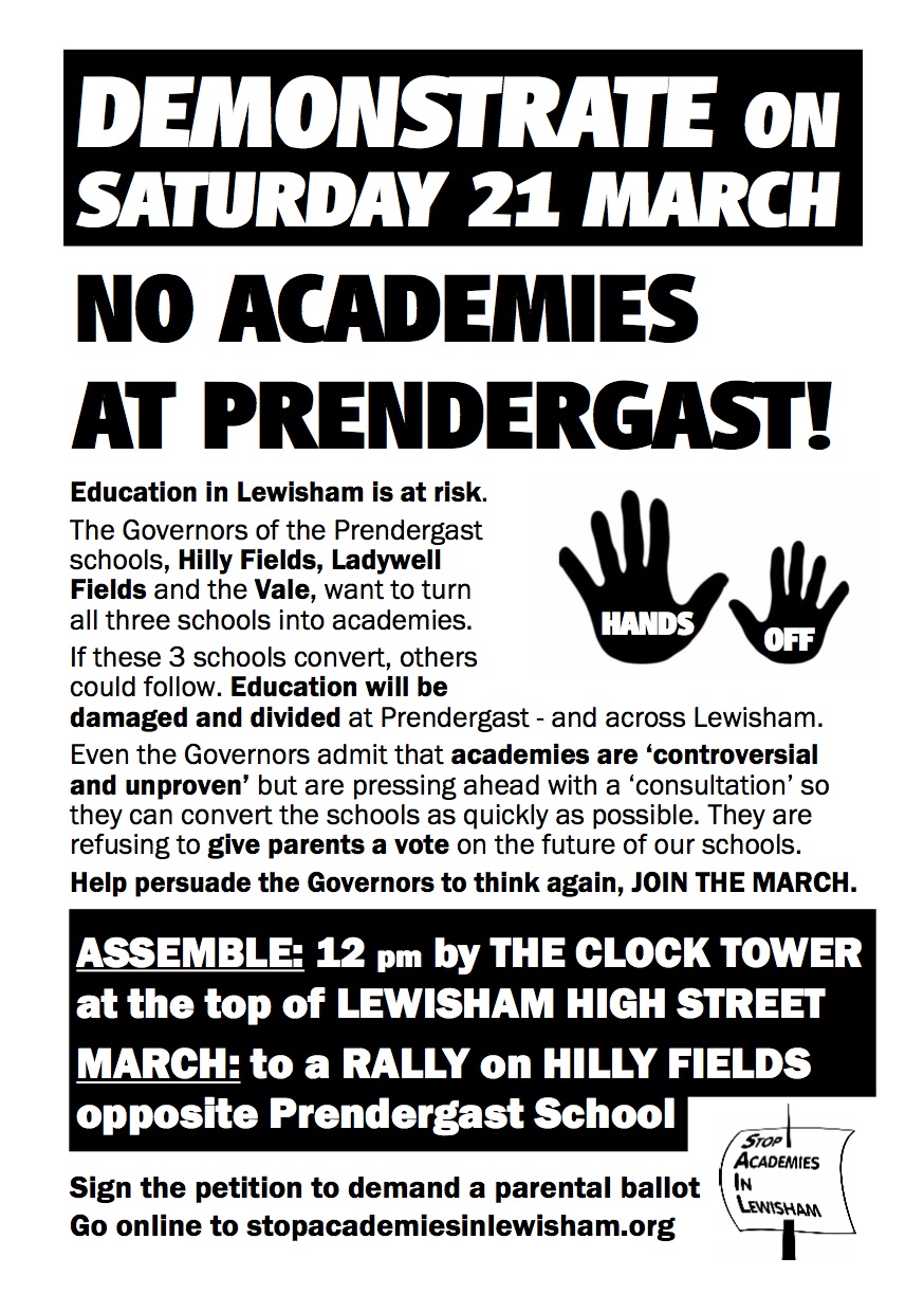 This campaign started with a petition demanding a vote on the proposed academisation of LSFed Prendergast schools. Over 1000 have signed so far! The board of governors are denying this democratic right. Make them listen!