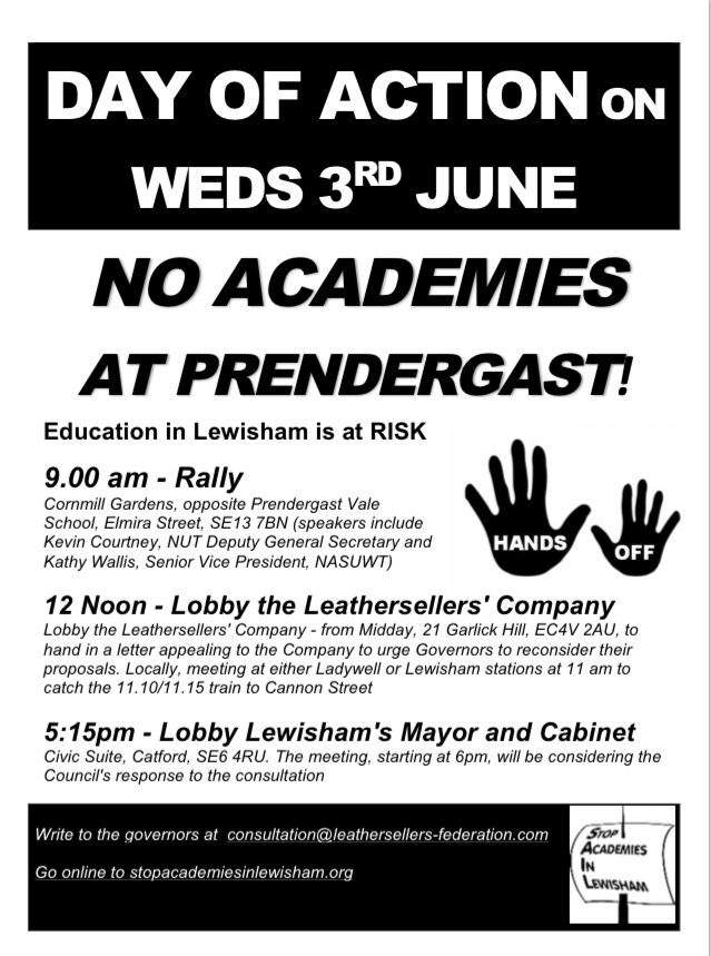 In May 2015 a formal letter of claim was written under the judicial review pre-action protocol threatening Judicial Review proceedings against the Federation and the Secretary of State for Education. The potential claimant was a parent of a child at Prendergast School. The basis of the challenge was that the 3 academy orders for Prendergast School, Prendergast Vale and Prendergast Ladywell Fields had been made unlawfully by the Secretary of State, as the Governing Board of the Federation had acted in breach of the regulations which govern the procedure Federations must follow when applying for an academy order. The regulations set out which classes of governor must apply for an academy order. One of the classes of governor stipulated under the regulations is the staff governor. The staff governor did not vote in favour and so there appeared to be a clear breach of the regulations.